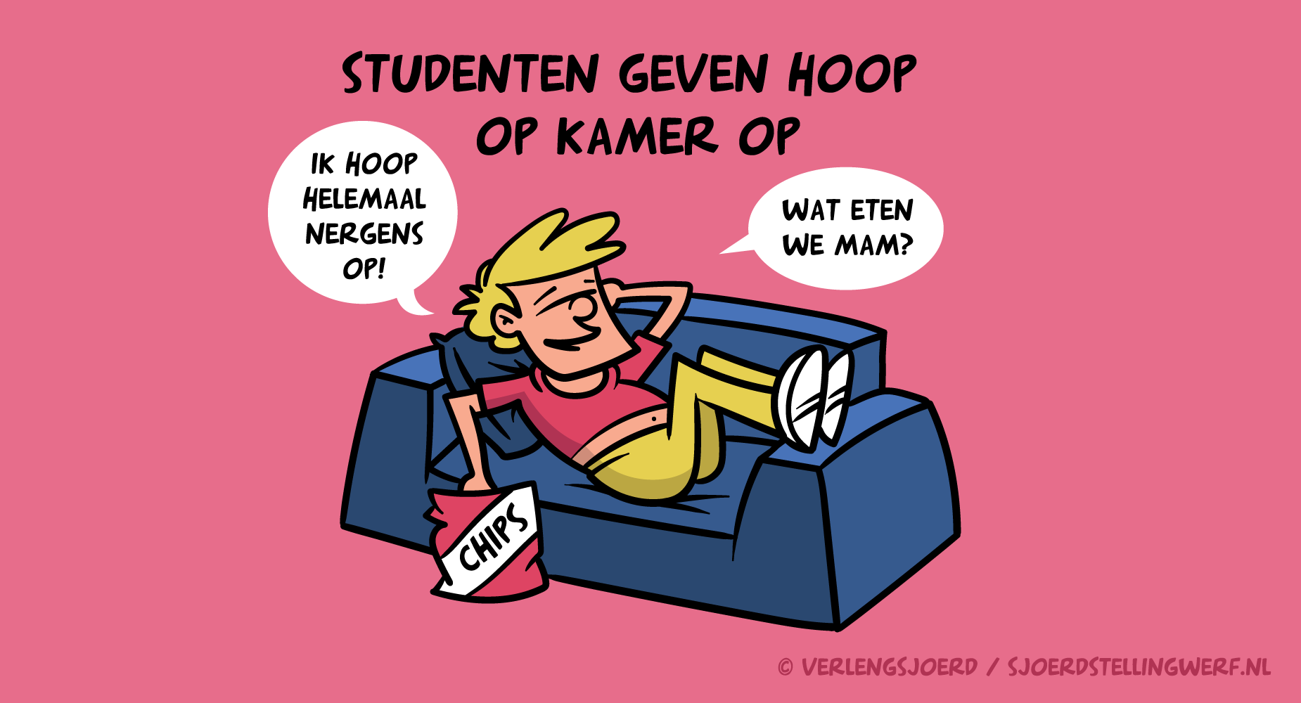 In zijn nieuwe cartoon besteedt Verlengsjoerd aandacht aan de problemen die studenten hebben met het vinden van een kamer. De meesten hebben de hoop opgegeven.